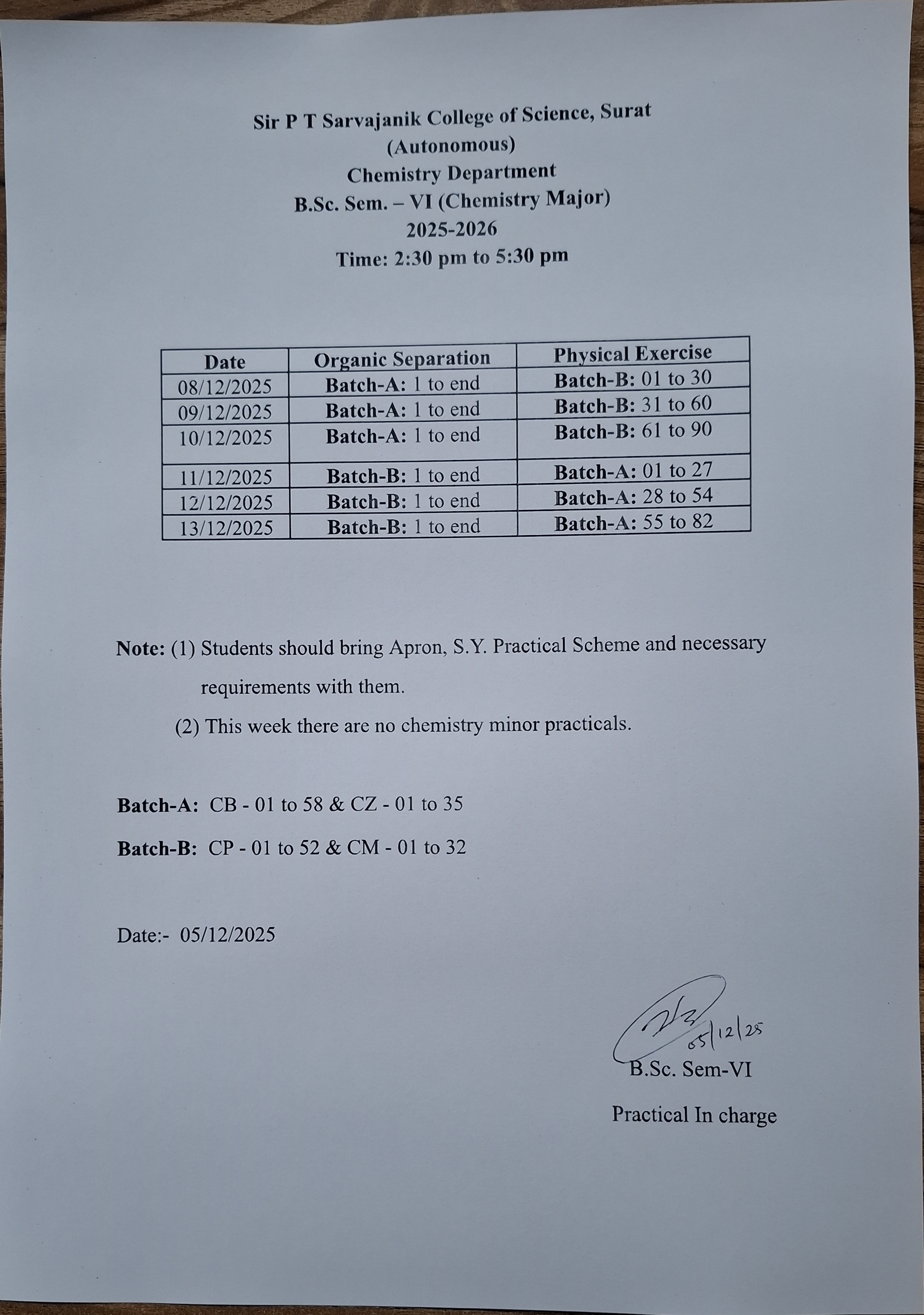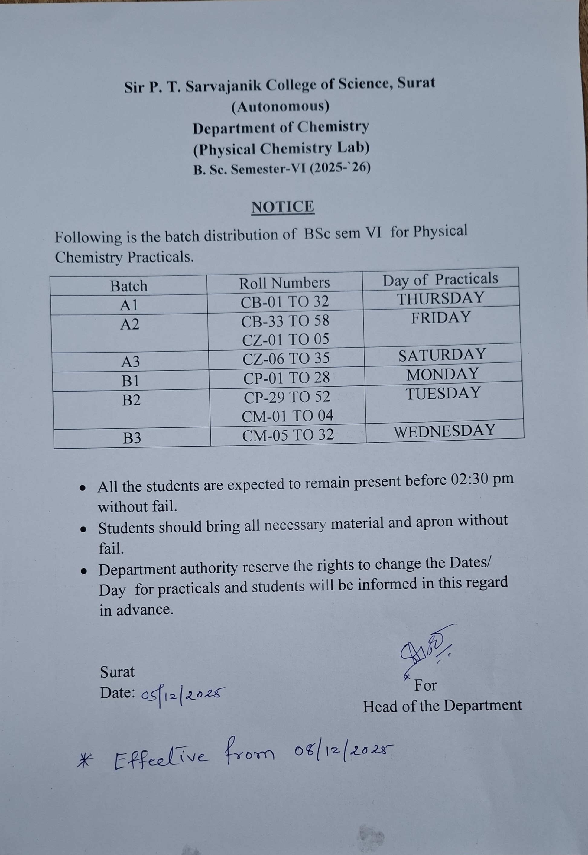 આથી બી.એસ.સી. ના વિદ્યાર્થીઓને જણાવવાનું કે થીયરી અને પ્રેક્ટીકલ તા. ૦૮/૧૨/૨૦૨૫ થી શરૂ થનાર છે.